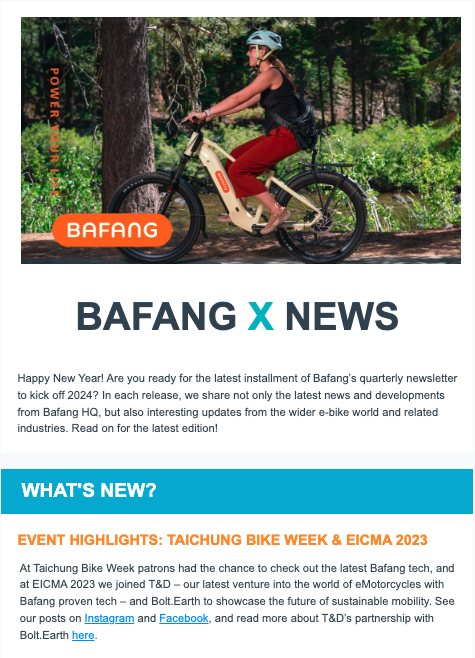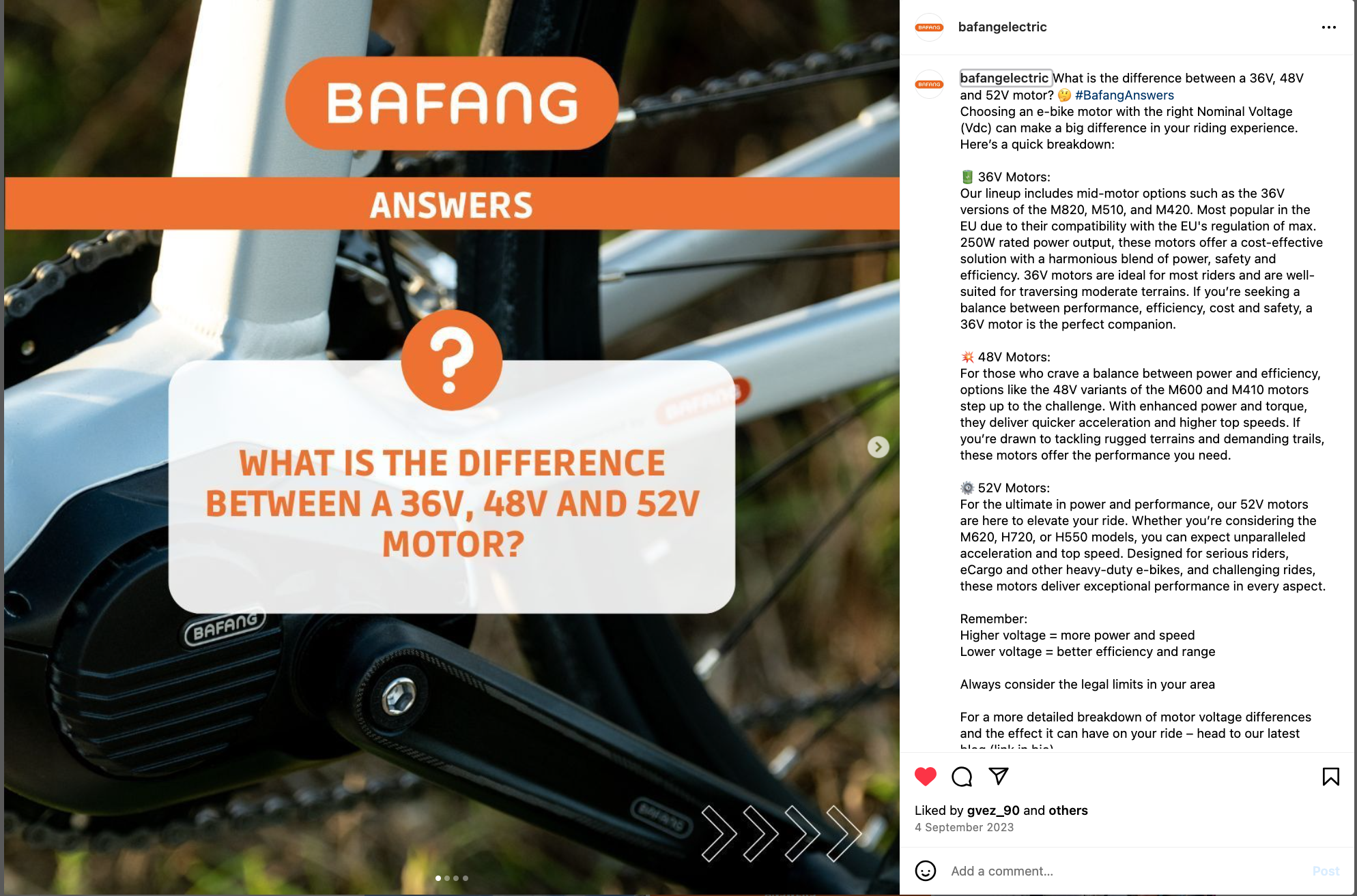 In 2023, I facilitated an update of Bafang’s product ad text to increase clarity and engagement on the regular release of drive system information on social media.