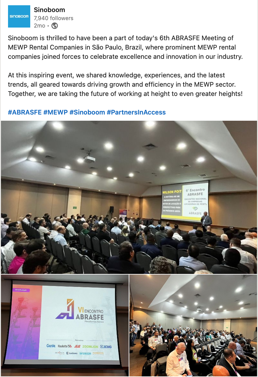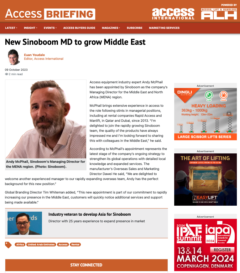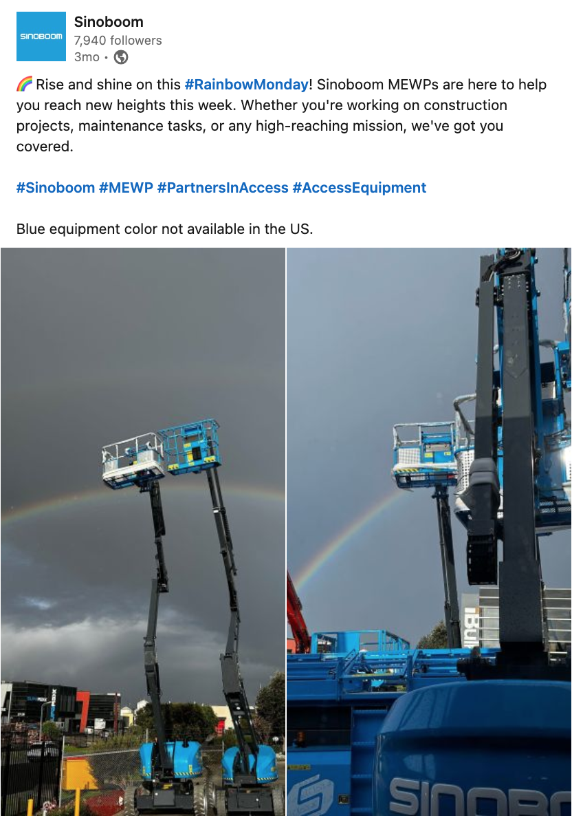 In my role with Make it China, I provide ad hoc social media and public relations services to global MEWP manufacturer, Sinoboom.
